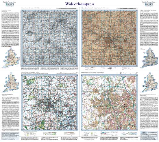 Easy comparison of past and present. 4 periods, 4 maps, 1 scale.Ordnance survey One-Inch maps from the Old series, New Revised Series and Popular Edition enlarged, re-projected and shown alongside present day 1:50,000 mapping.